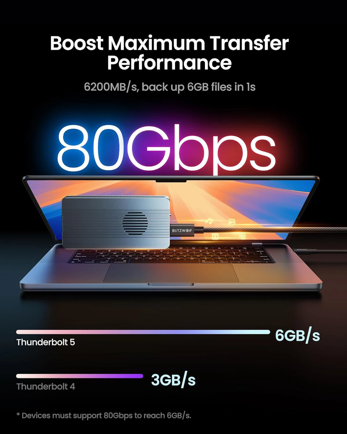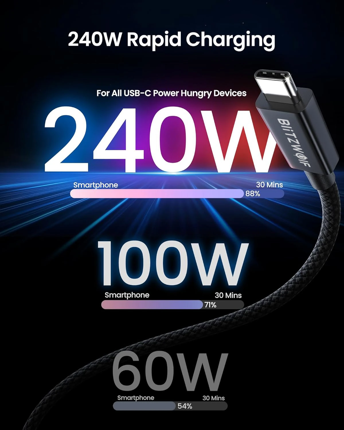 Das BlitzWolf® BW-HDC8 Thunderbolt 5 ist ein USB-Typ-C-Kabel, das Sie jahrzehntelang in Sachen Ladeleistung, Datenübertragungsgeschwindigkeit und -qualität treu begleiten wird – egal ob für Windows-, Android- oder MacBook-Geräte. Es ist nicht nur ein Kabel – es ist eine Investition in maximale Geschwindigkeit und kompromisslose Effizienz.