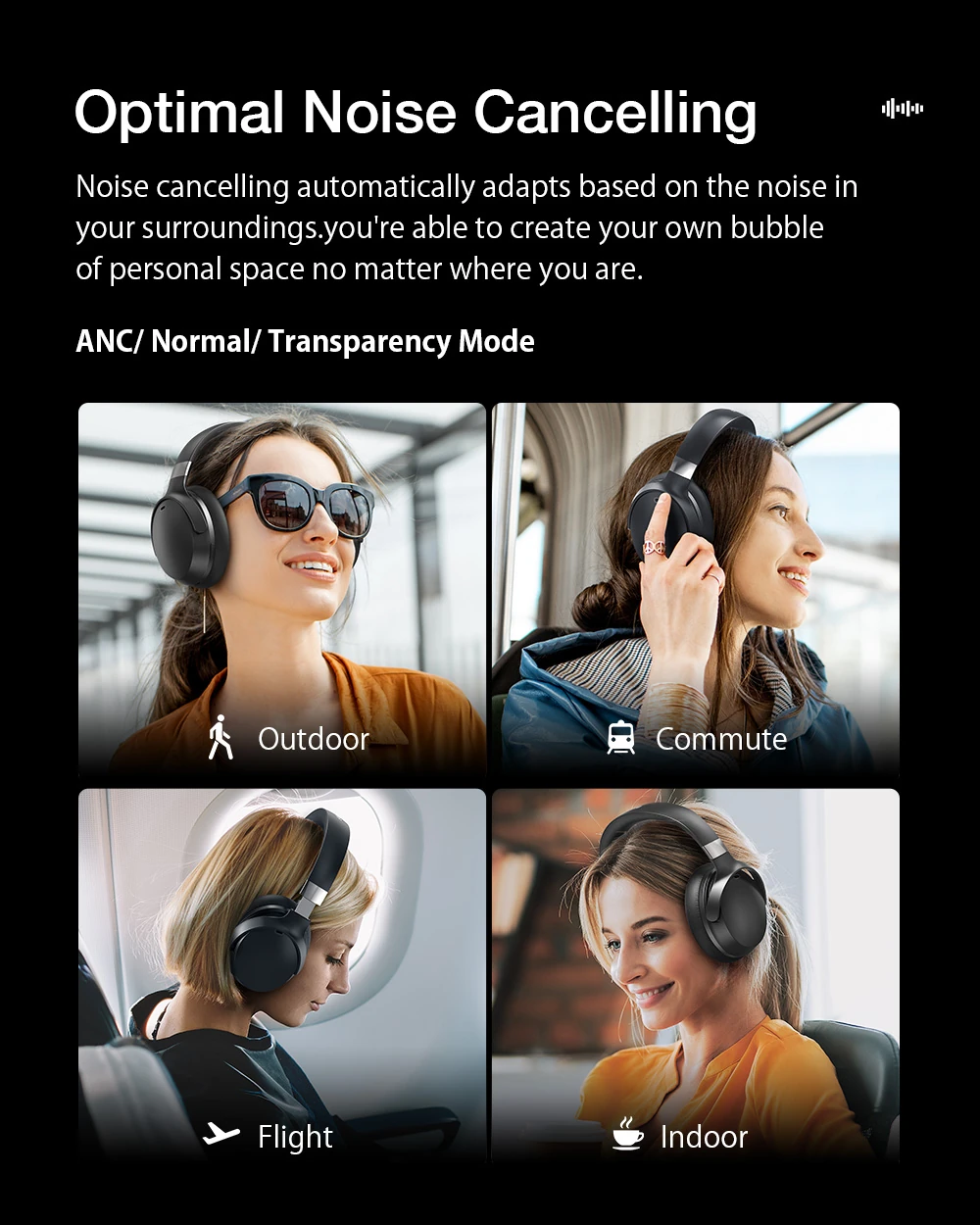 Im Zug, Bus oder Flugzeug können Sie dank aktiver Geräuschunterdrückung eine Oase der Ruhe schaffen.