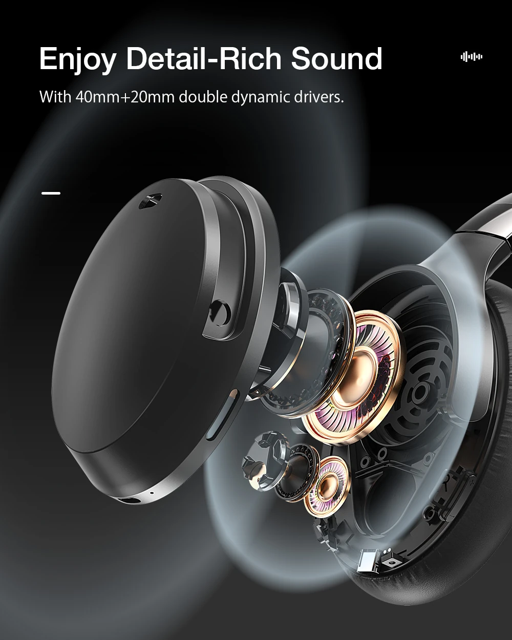 Dank der 40-mm- und 20-mm-Dynamiktreiber liefert der BW-HP5 Lite unübertroffene Klarheit und Kraft. Genießen Sie tiefe, kraftvolle Bässe, klare Mitten und kristallklare Höhen. Hören Sie jede Note und jedes Detail genau so, wie es der Künstler beabsichtigt hat.