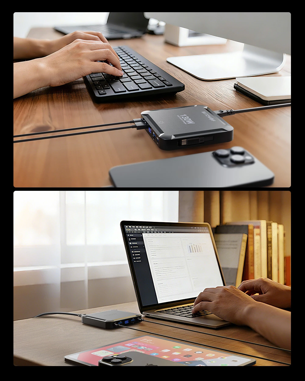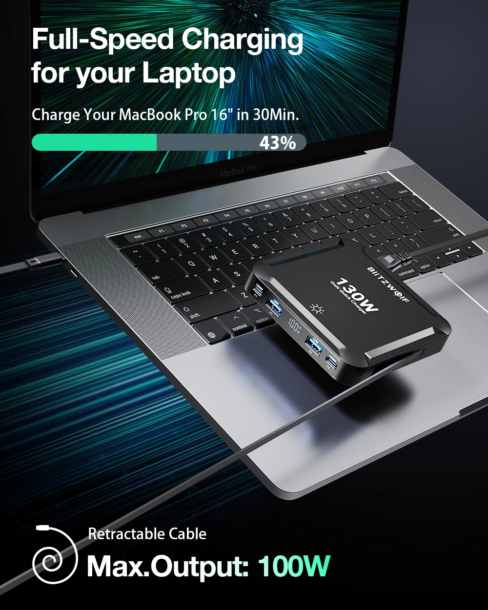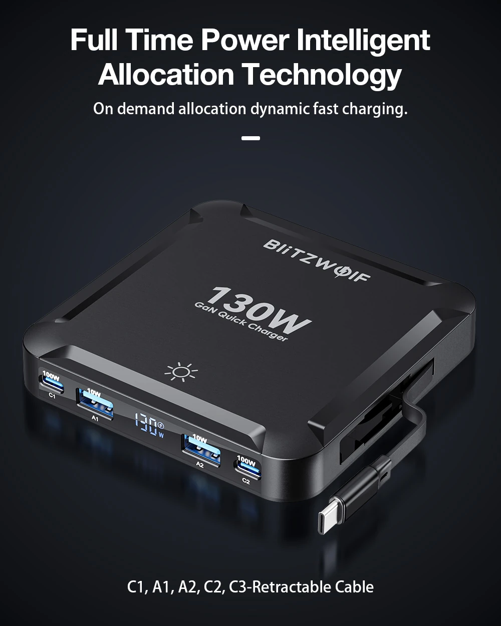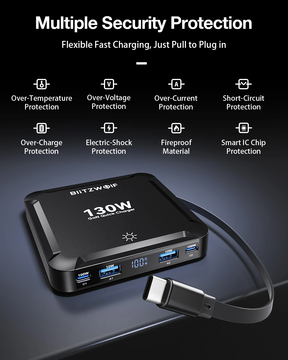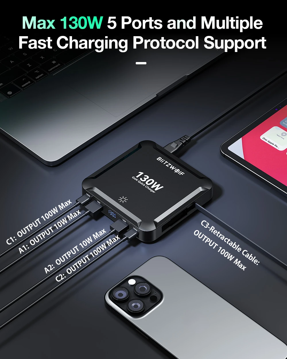 Hervorragende Leistung im kompakten Format: Der BW-S32 bietet eine Gesamtleistung von 130 Watt, die durch die fortschrittliche GaN-Technologie (Galliumnitrid) erreicht wird. Dank dieser Technologie ist das Ladegerät kleiner und leichter, arbeitet aber dennoch effizient und kühl, sodass Sie sich keine Sorgen um Überhitzung machen müssen.