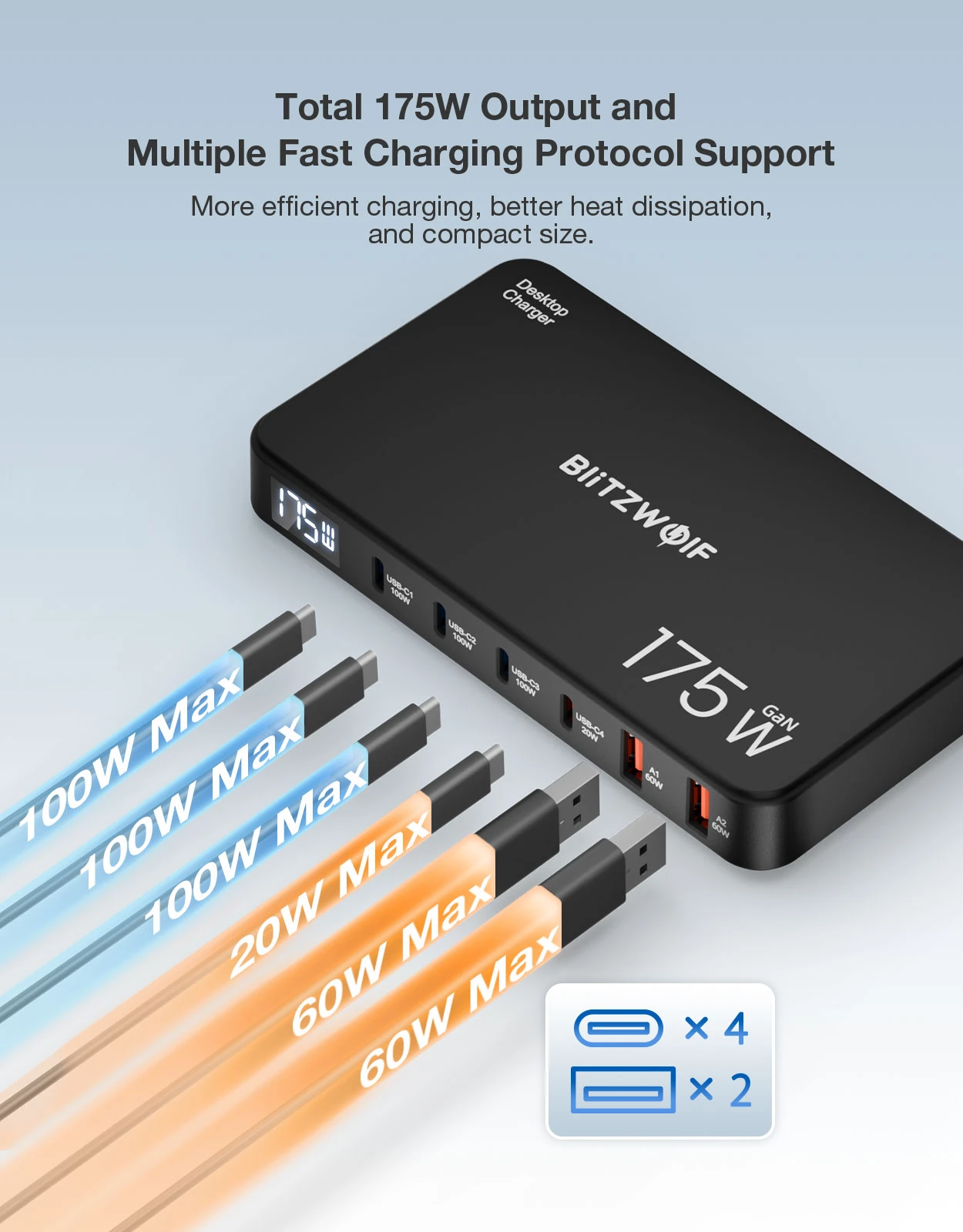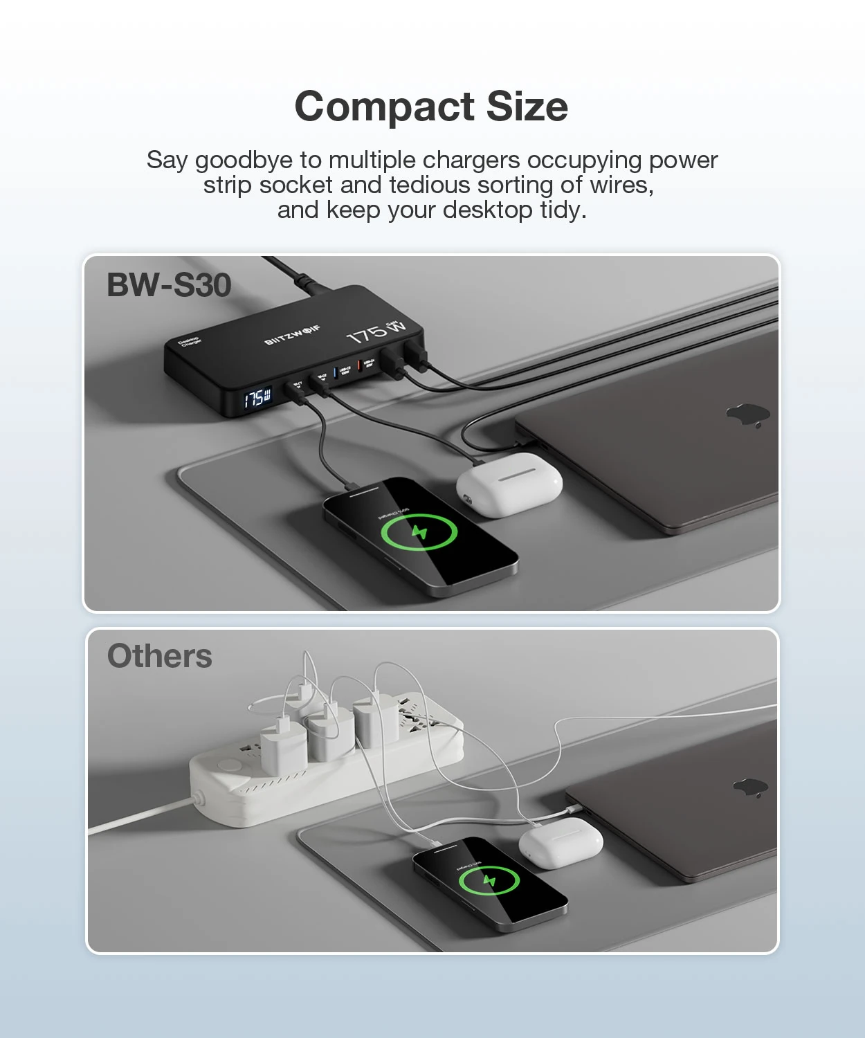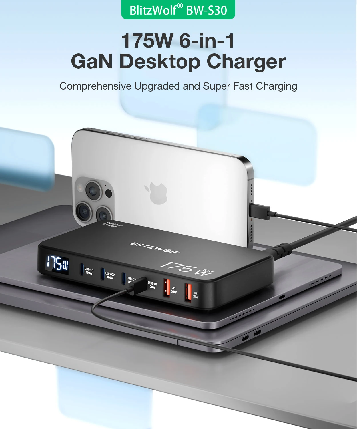 Blitzwolf® BW-S30 – Das kompakte und leistungsstarke 175-W-GaN-Tischladegerät