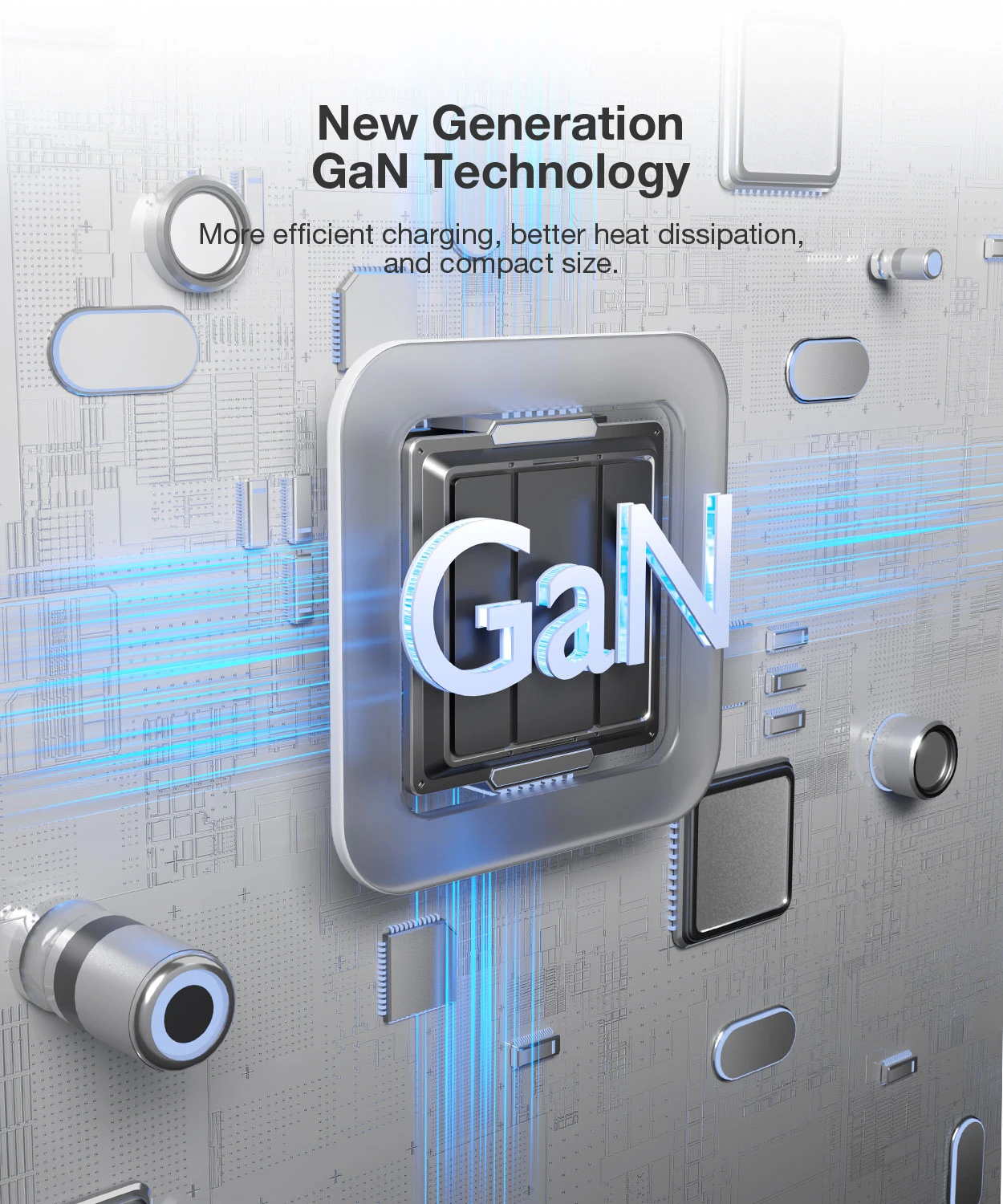 Die Verwendung von Galliumnitrid (GaN)-Halbleitern ermöglicht eine geringere Größe, höhere Effizienz und geringere Wärmeentwicklung im Vergleich zu herkömmlichen Ladegeräten auf Siliziumbasis. Dadurch ist das BW-S30 extrem kompakt und leicht und nimmt nur wenig Platz auf Ihrem Schreibtisch oder unterwegs ein.