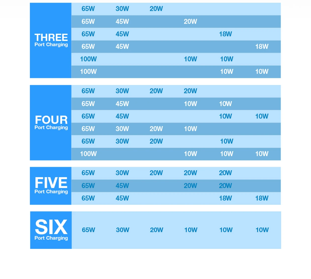 6-Port-Design: Das Ladegerät verfügt über vier USB-C- und zwei USB-A-Anschlüsse, sodass Sie bis zu sechs Geräte gleichzeitig laden können.