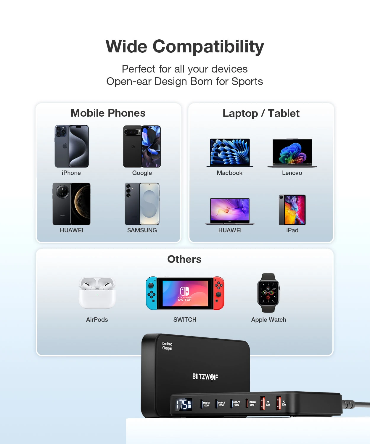 Blitzwolf® hat das Ladegerät mit einem mehrstufigen Schutzsystem ausgestattet, das vor Überstrom, Überspannung, Überhitzung und Kurzschluss schützt. So können Sie sicher sein, dass Ihre Geräte beim Laden stets sicher sind.