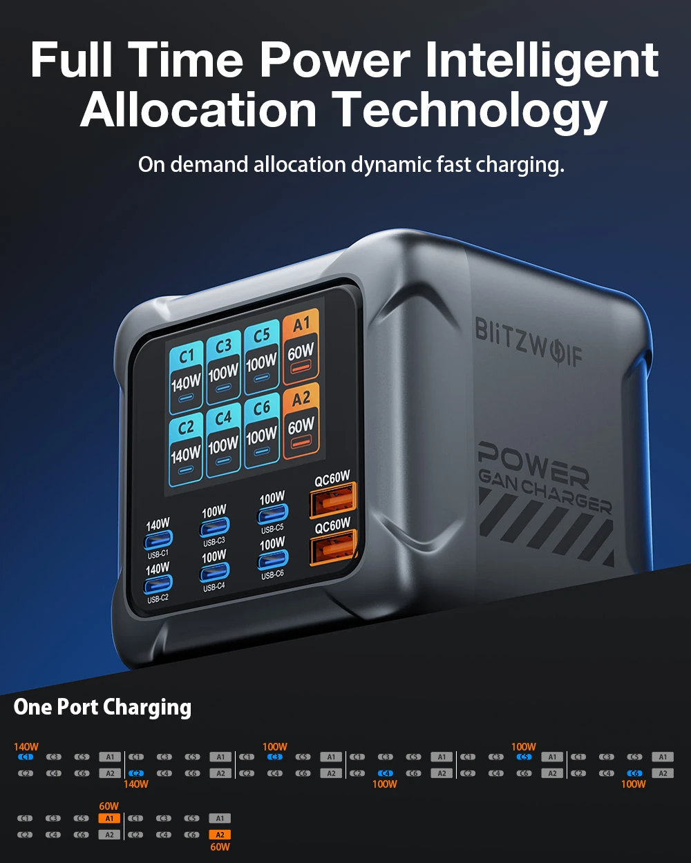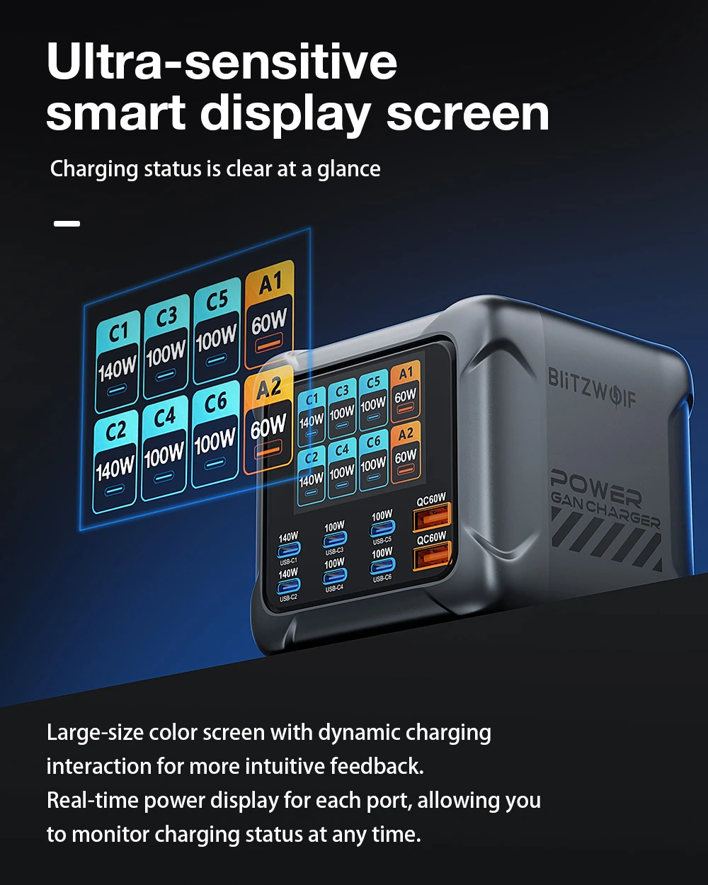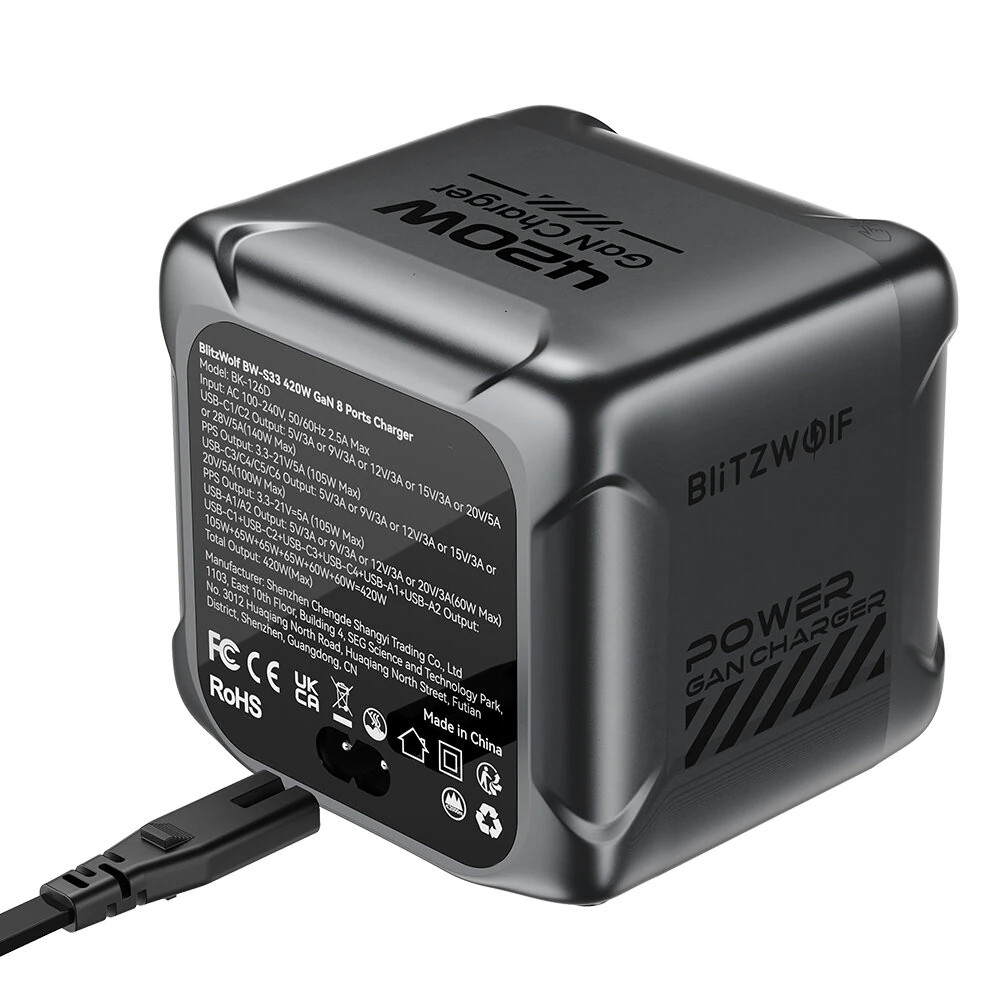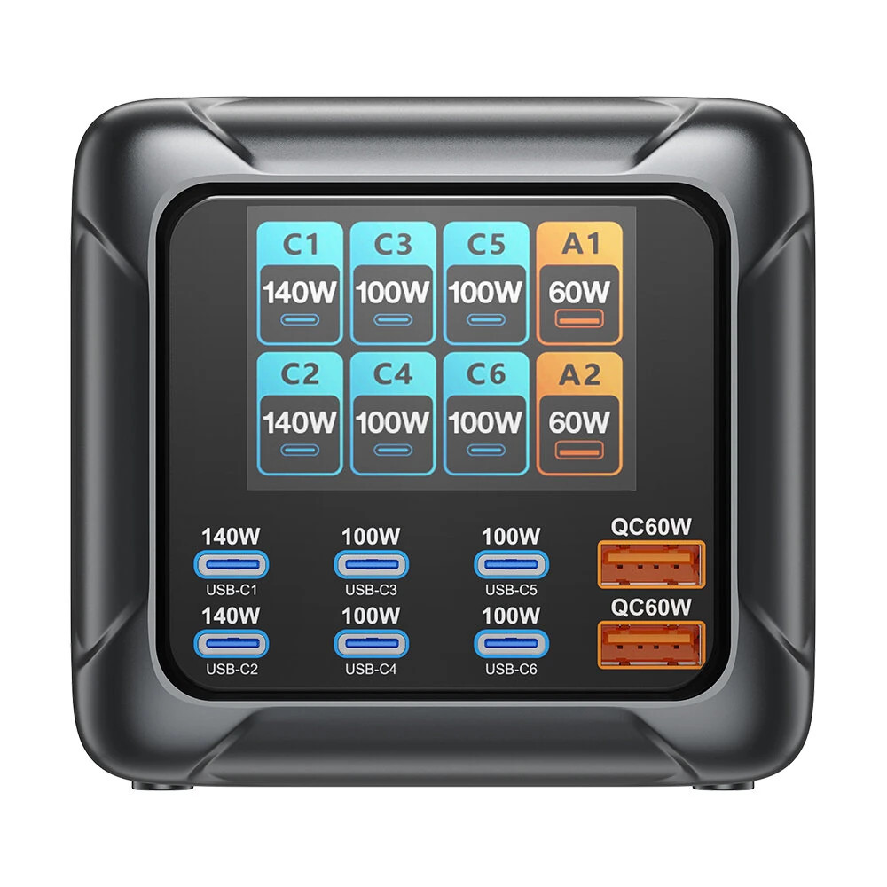 Entdecken Sie die Blitzwolf® BW-S33 420W 8-Port USB PD Ladestation – die perfekte Lösung für schnelles und sicheres Laden all Ihrer Geräte! Dieses kompakte und dennoch leistungsstarke Desktop-Ladegerät verfügt über 6 USB-C- und 2 USB-A-Anschlüsse, mit denen Sie bis zu acht Geräte gleichzeitig laden können. Das digitale Display zeigt den Ladezustand präzise an, sodass Sie Ihre Stromversorgung stets im Blick haben.