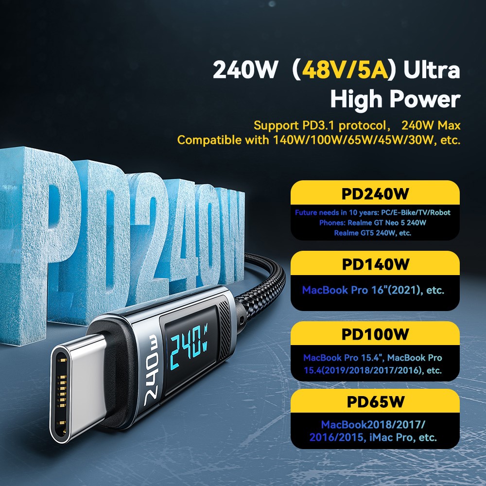 Unterstützt das PD3.1-Protokoll, max. 240 W, kompatibel mit Geräten mit 140 W, 100 W, 65 W, 45 W, 30 W usw.