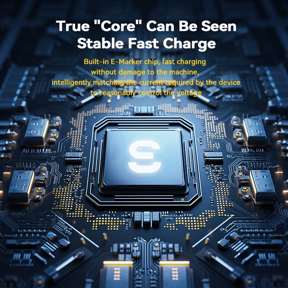 Integrierter E-Marker-Chip für schnelles Laden ohne Beschädigung des Geräts. Die Spannung wird intelligent an den Gerätebedarf angepasst.