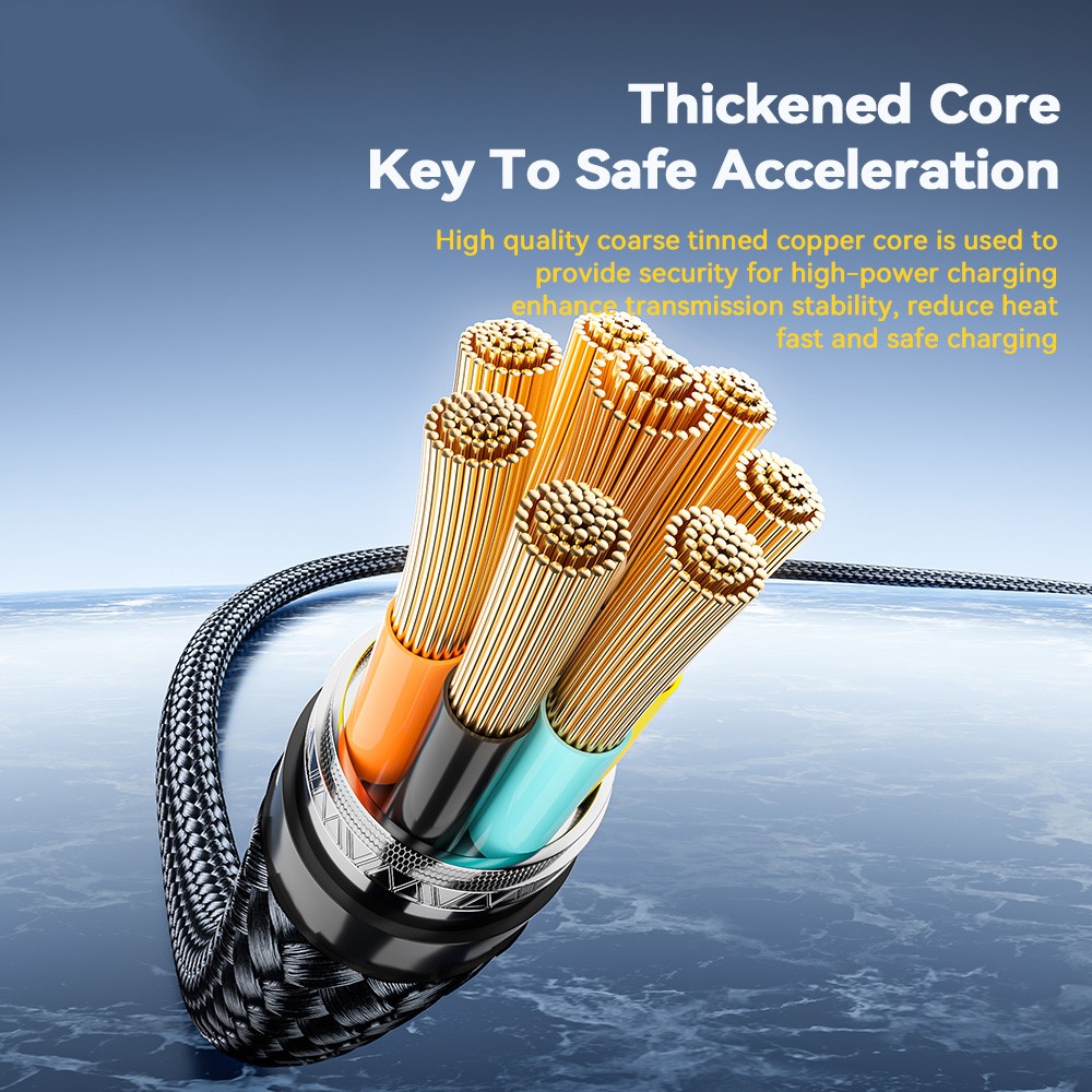 Der hochwertige, grob verzinnte Kupferkern gewährleistet sicheres Laden mit hoher Leistung, verbesserte Übertragungsstabilität, reduzierte Wärmeentwicklung und sorgt für schnelles und sicheres Laden.