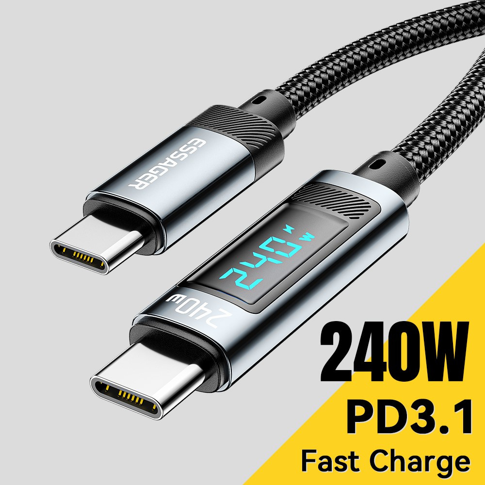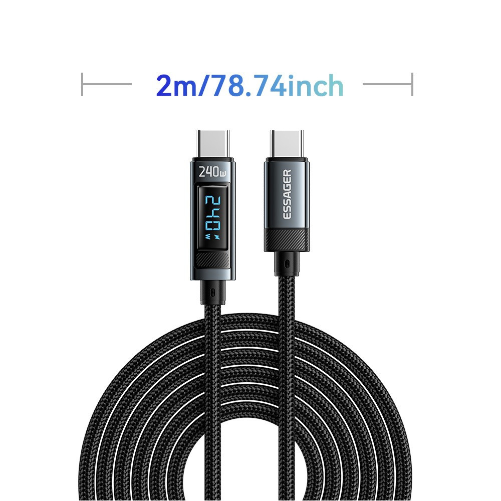ESSAGER ES-X47 – 2 Meter langes Type-C - Type-C Kabel. Digitalanzeige, 240-W-Ladefunktion, Perlmuttstoffbezug
