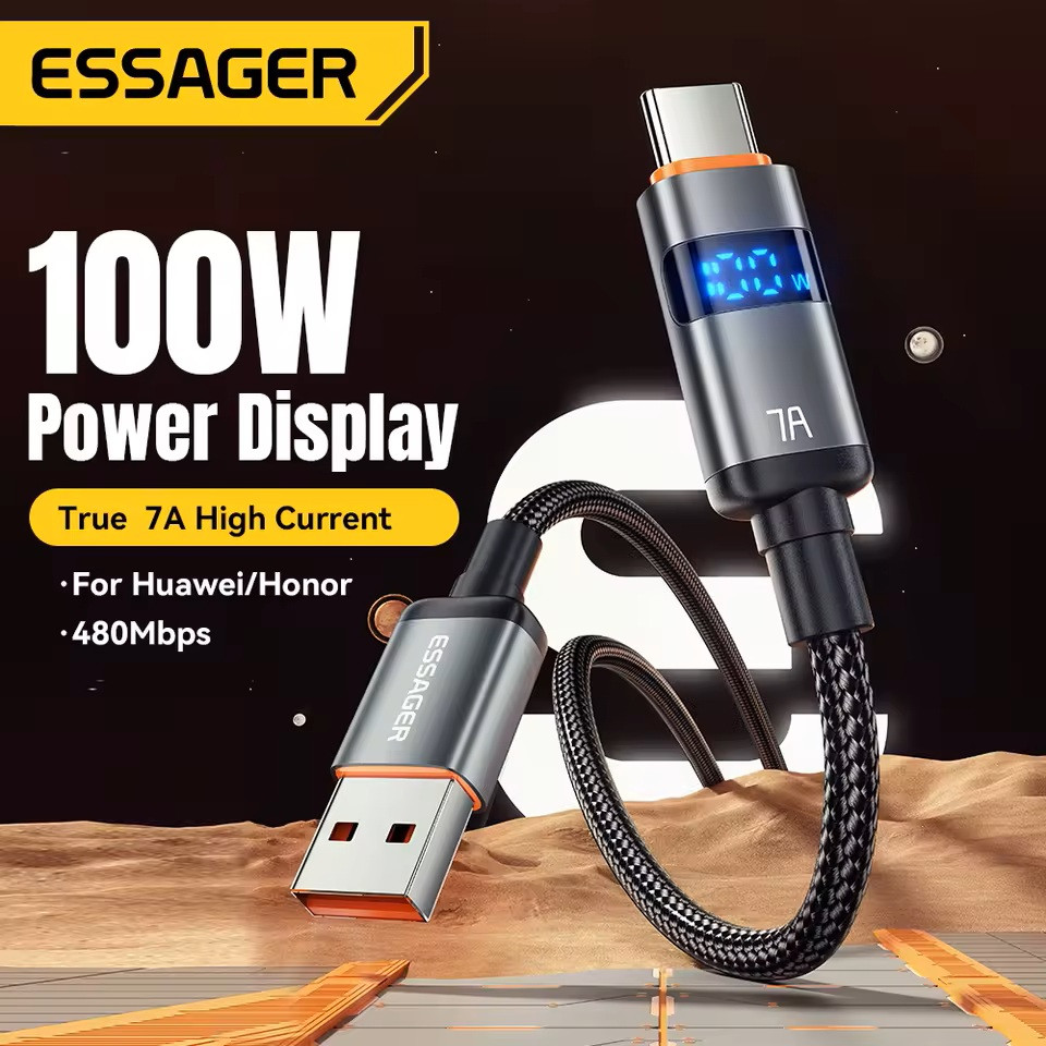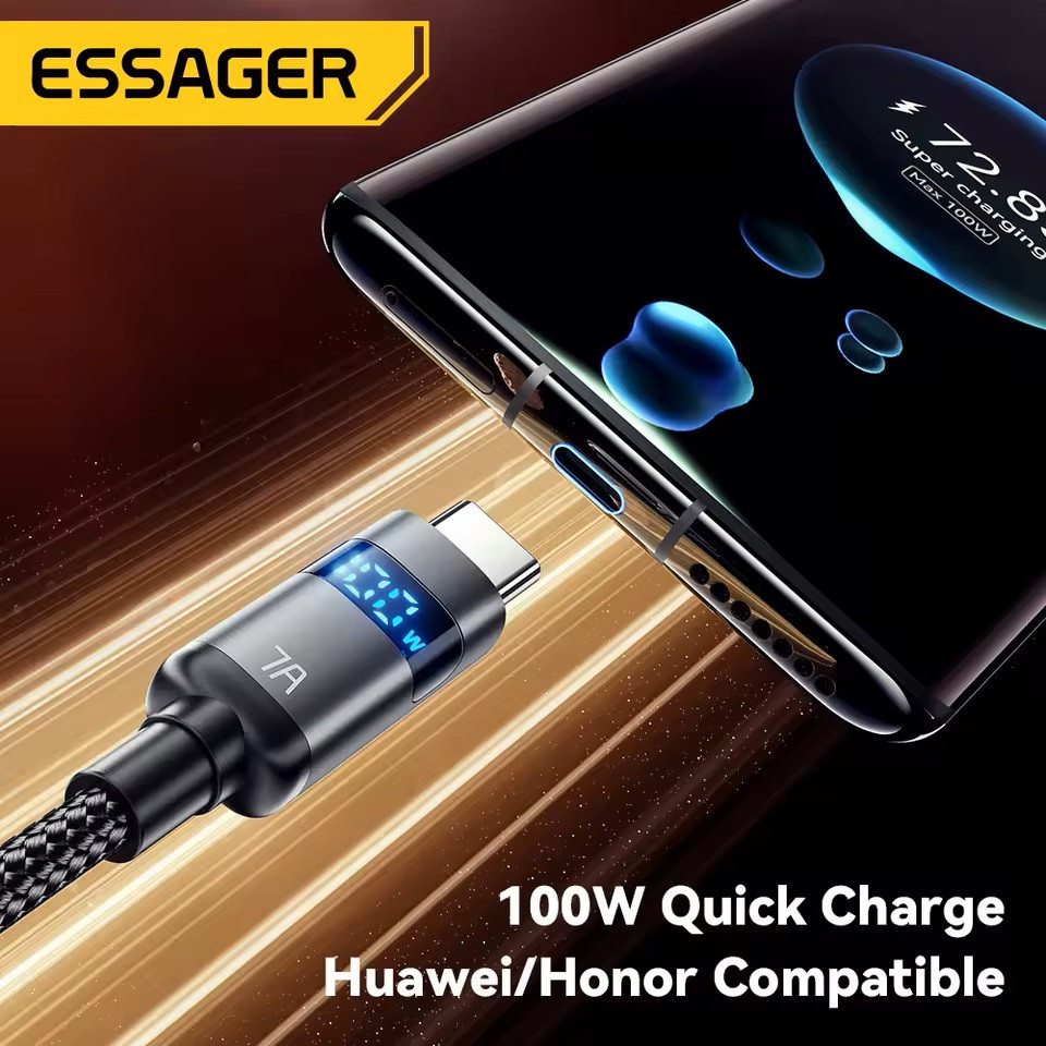 ESSAGER ES-X61 – 1 Meter langes Type-A - Type-C Kabel. Digitalanzeige, 100-W-Ladefunktion, Perlmuttstoffbezug