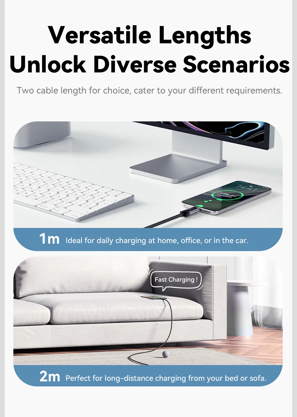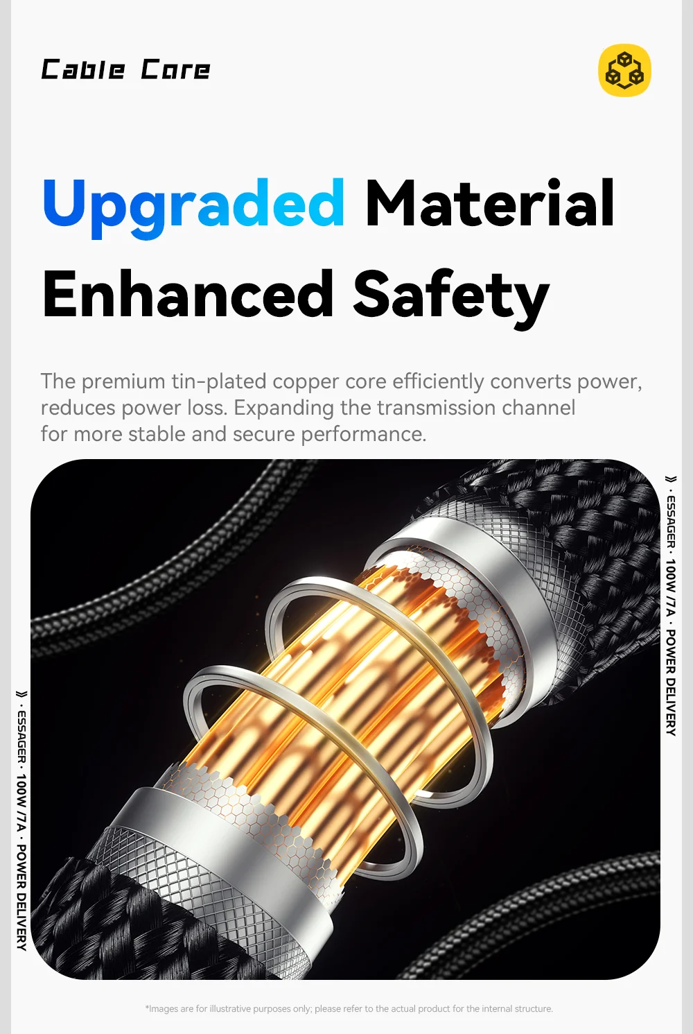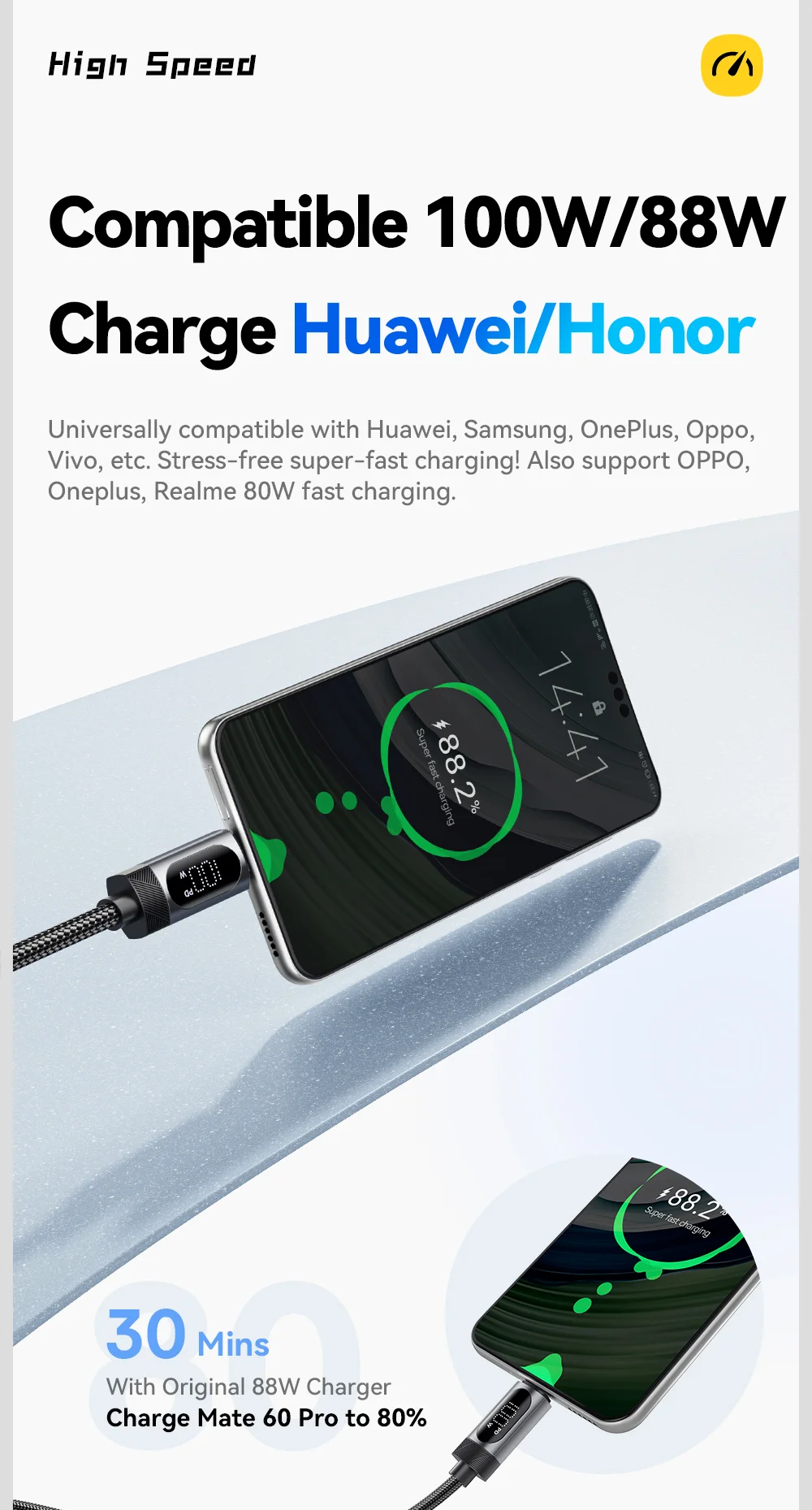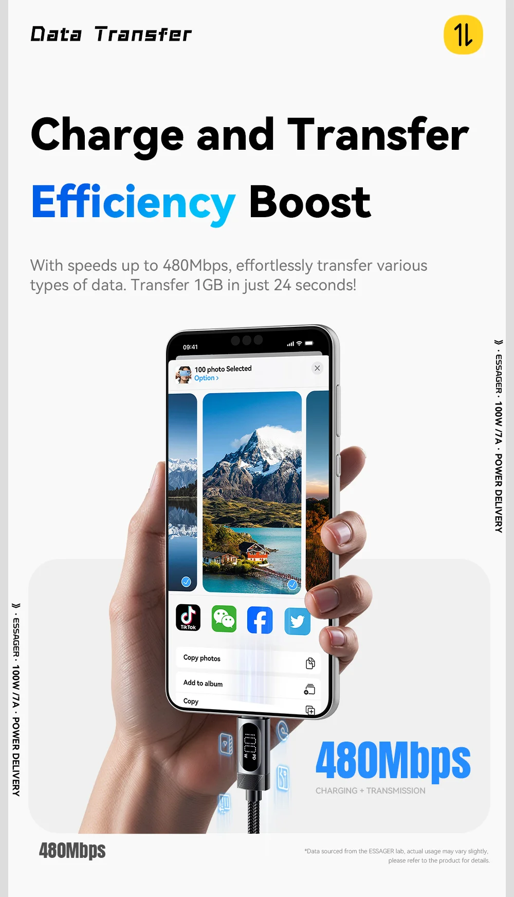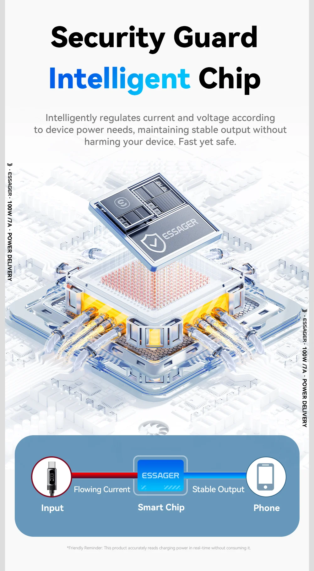ESSAGER ES-X64 – 1 Meter langes Type-A - Type-C Kabel. Digitalanzeige, 100-W-Ladefunktion, Perlmuttstoffbezug