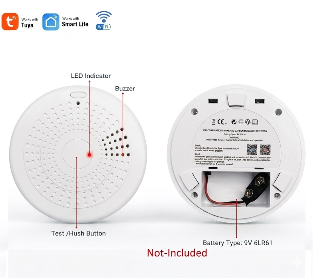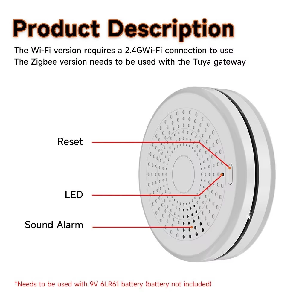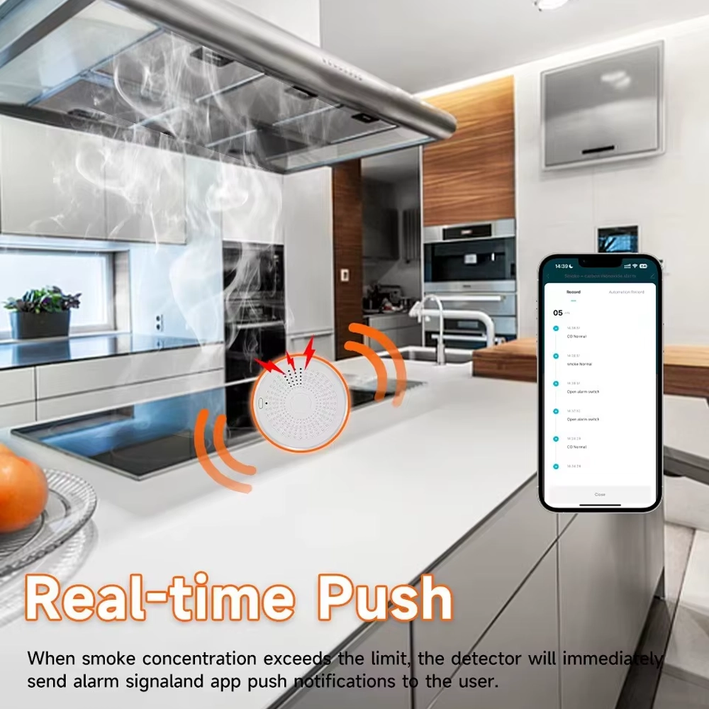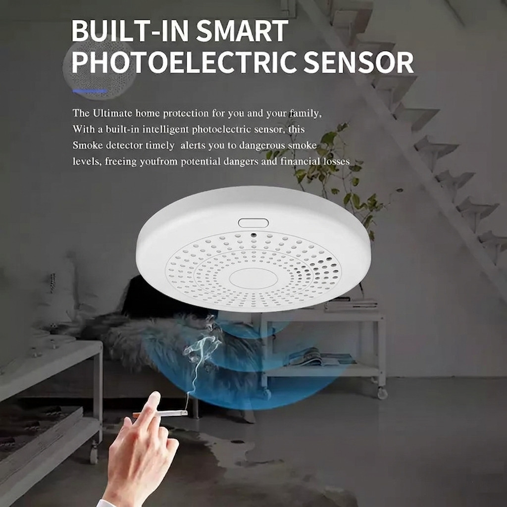 Dieses Produkt nutzt ein von der Tuya Technology Corporation entwickeltes Low-Power-Modul mit integrierter WLAN-Konnektivität, um das Gerät mit der Tuya-Cloud-Plattform zu verbinden. Sobald das Gerät Kohlenmonoxid oder Rauch erkennt, sendet es automatisch eine Alarmmeldung an die App, um den Benutzer rechtzeitig zu warnen und so Leben sowie Eigentum zu schützen.