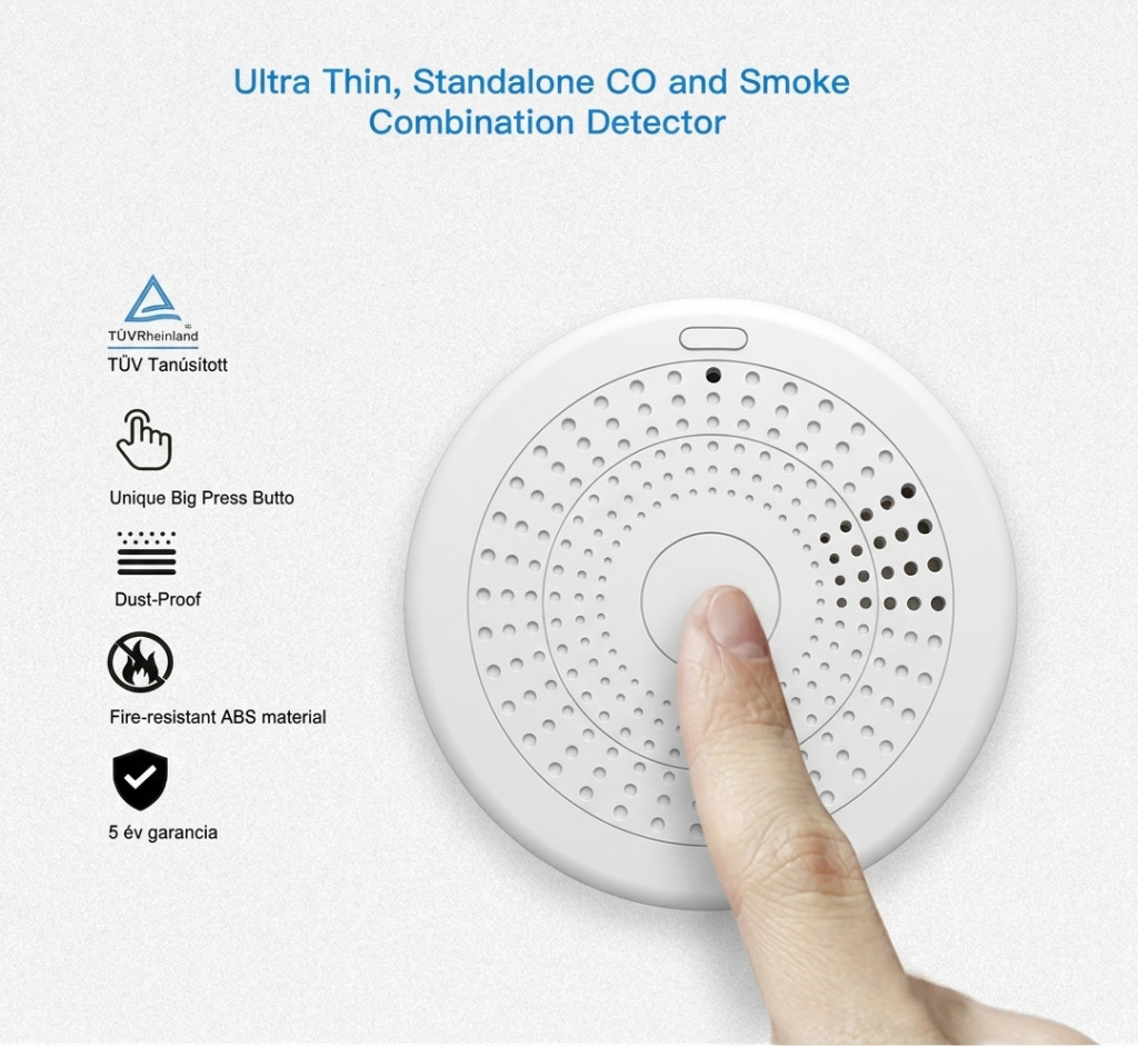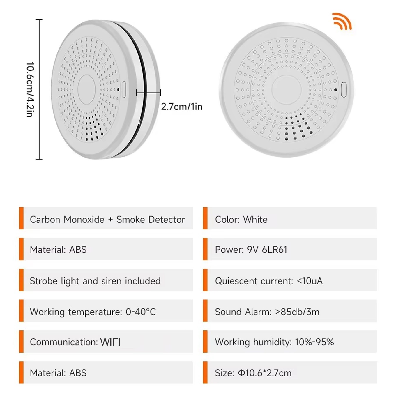 Intelligenter WLAN-Kohlenmonoxid- und Rauchmelder. App-Steuerung, App-Benachrichtigung und lokaler Alarm.