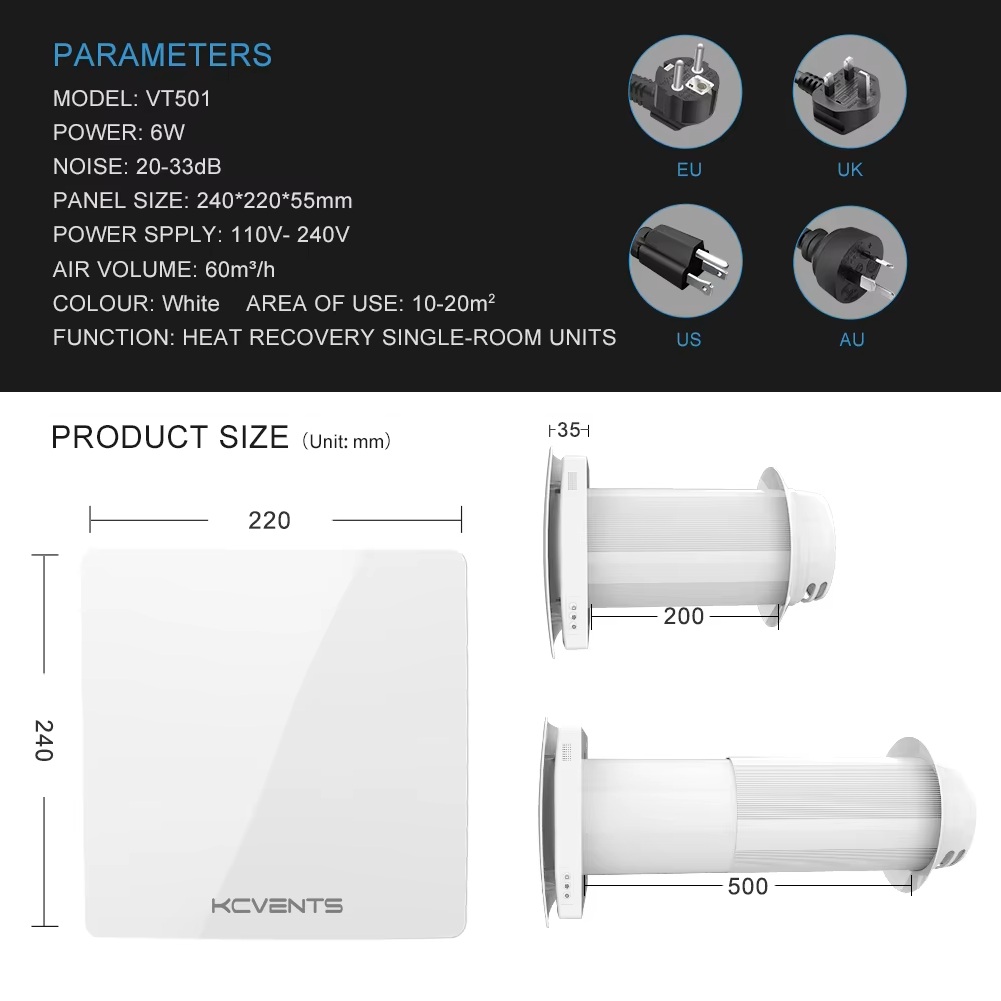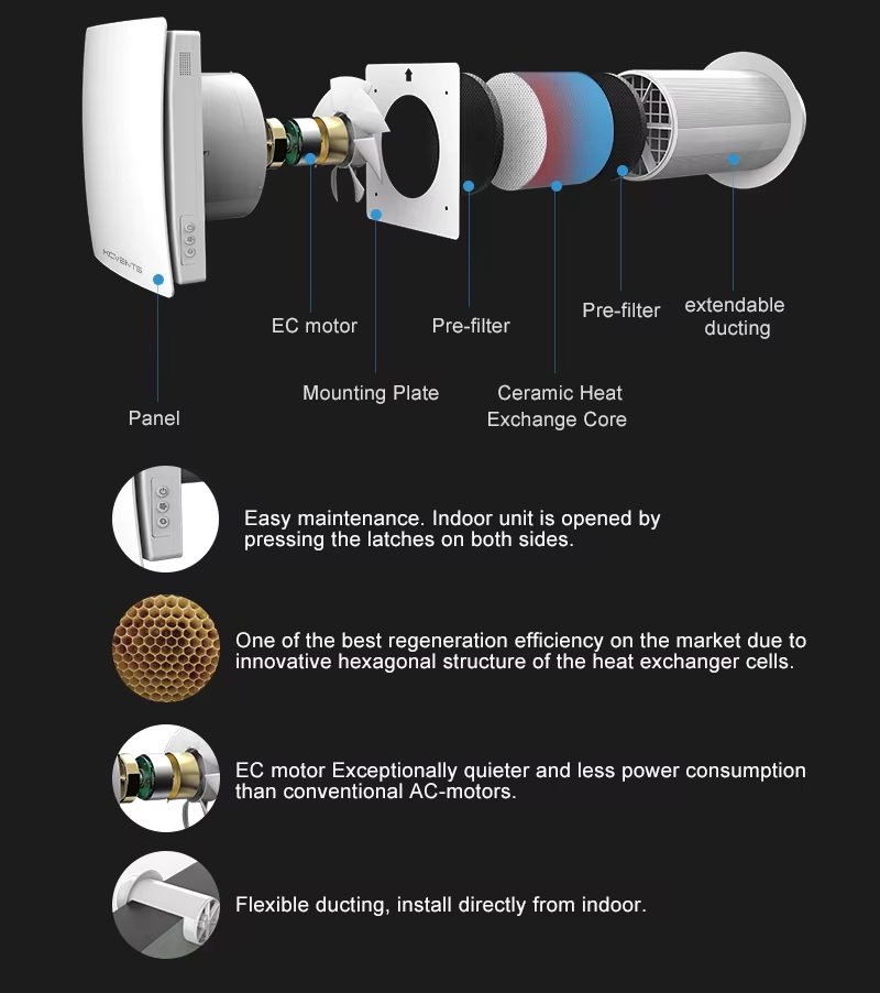 KCvents VT501 SMART – Dezentrale Einzelraum-Lüftungsanlage mit Keramik-Wärmerückgewinnung
