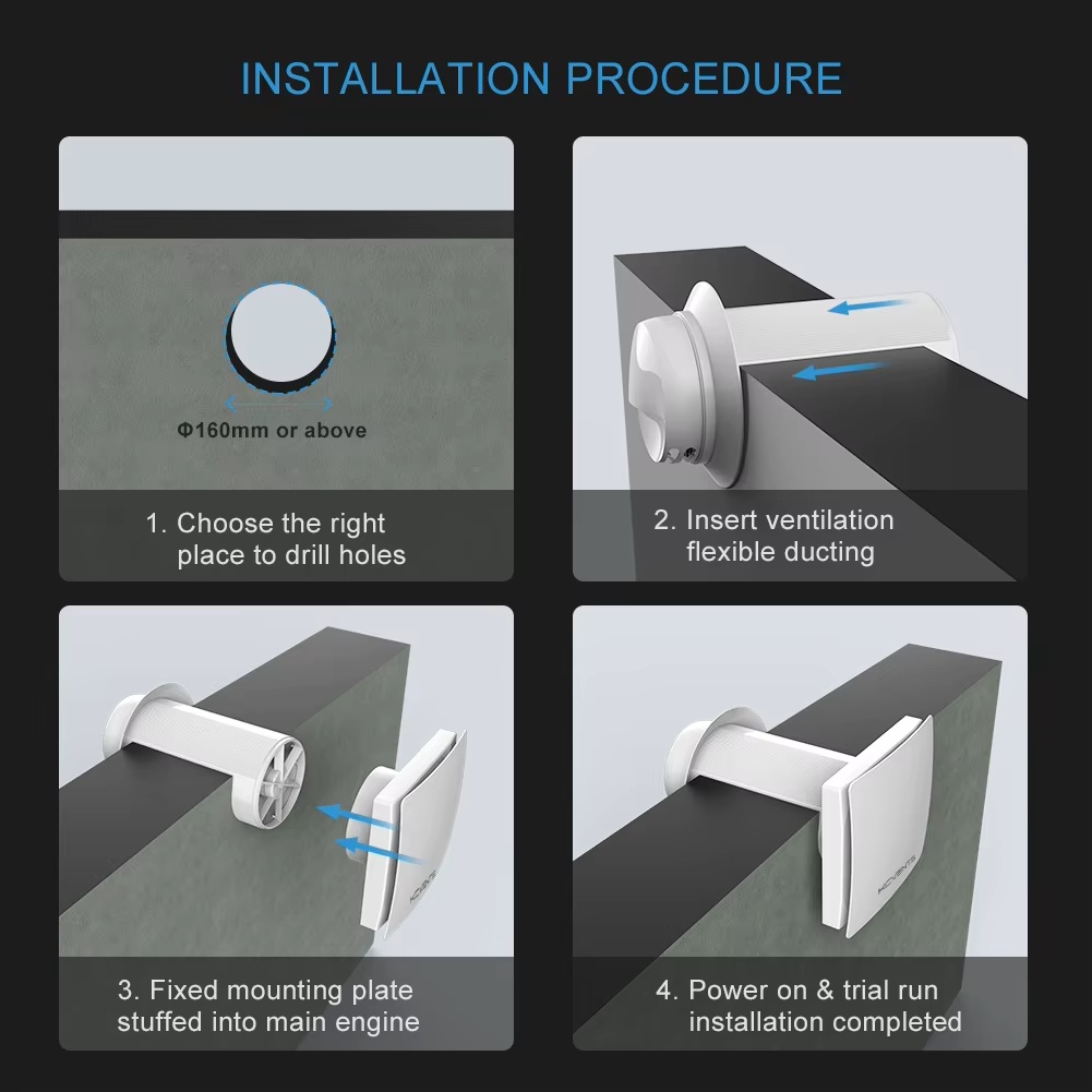 - Leiser Betrieb: Der bürstenlose Hochleistungsmotor und die wandnahe Bauweise sorgen für eine Geräuschentwicklung von unter 30 dB, was den Wohnkomfort nicht beeinträchtigt.