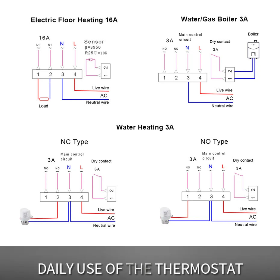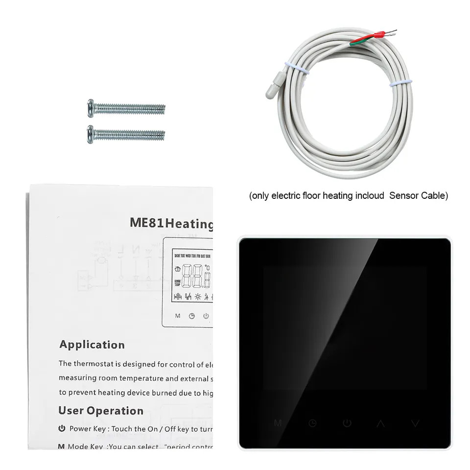 LCD-Touchscreen Das intelligente Thermostat verfügt über einen eleganten, empfindlichen LCD-Touchscreen, der kratzfrei und leicht zu reinigen ist. Es kann von einer Anwendung aus gesteuert werden Egal, ob Sie zu Hause oder unterwegs sind, Sie können Ihre Hausheizung mit der Smart Life- oder TuyaSmart-App von Ihrem Telefon oder Tablet aus fernsteuern, basierend auf IOS und Android. Es funktioniert nur mit 2,4-GHz-WLAN-Netzwerken. Für den Betrieb ist kein Hub erforderlich. Stimmenkontrolle Das Thermostat funktioniert perfekt mit Amazon Alexa und Google Assistant. Geben Sie unterwegs einfach Sprachbefehle zum Ein- und Ausschalten oder zum Einstellen der richtigen Temperatur. Programmiermodus Programmierbarer 7-Tage-Modus, der auf 5+2, 6+1 und 7 Tage eingestellt werden kann, um alle Ihre Anforderungen zu erfüllen. Energieeinsparung Mit diesem smarten Thermostat sparen Sie jährlich rund 20 % Heizkosten. Kindersicherung Verhindern Sie, dass Kinder es versehentlich berühren, um unnötige Verluste zu vermeiden. Sharing-Funktion Sie können alle Geräte der Tuya-Serie mit Ihren Familienmitgliedern teilen, sodass Sie Ihr Zuhause gemeinsam verwalten können.