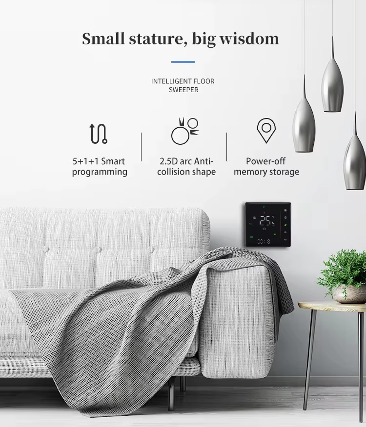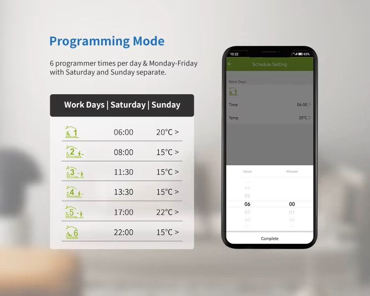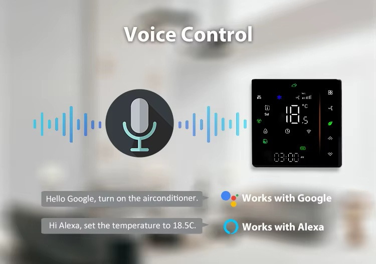 LCD-Touchscreen Das intelligente Thermostat verfügt über einen eleganten, empfindlichen LCD-Touchscreen, der kratzfrei und leicht zu reinigen ist. Es kann von einer Anwendung aus gesteuert werden Egal, ob Sie zu Hause oder unterwegs sind, Sie können Ihre Hausheizung mit der BlitzWolf / Smart Life- oder TuyaSmart-App von Ihrem Telefon oder Tablet aus fernsteuern, basierend auf IOS und Android. Es funktioniert nur mit 2,4-GHz-WLAN-Netzwerken. Für den Betrieb ist kein Hub erforderlich. Stimmenkontrolle Das Thermostat funktioniert perfekt mit Amazon Alexa und Google Assistant. Geben Sie unterwegs einfach Sprachbefehle zum Ein- und Ausschalten oder zum Einstellen der richtigen Temperatur. Programmiermodus Programmierbarer 7-Tage-Modus, der auf 5+2, 6+1 und 7 Tage eingestellt werden kann, um alle Ihre Anforderungen zu erfüllen. Energieeinsparung Mit diesem smarten Thermostat sparen Sie jährlich rund 20 % Heizkosten. Kindersicherung Verhindern Sie, dass Kinder es versehentlich berühren, um unnötige Verluste zu vermeiden. Sharing-Funktion Sie können alle Geräte der Tuya-Serie mit Ihren Familienmitgliedern teilen, sodass Sie Ihr Zuhause gemeinsam verwalten können.