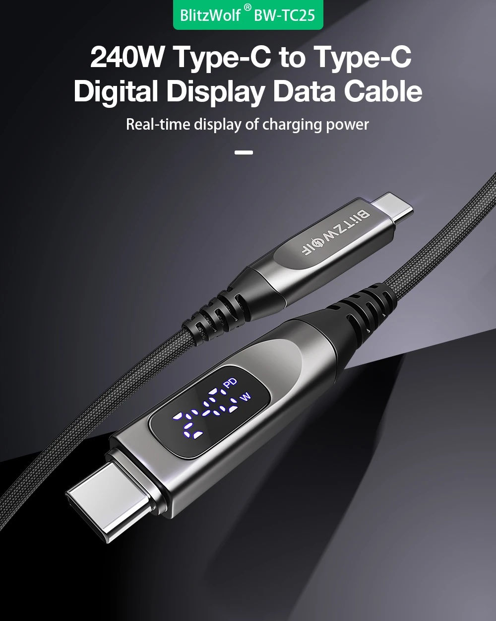 Bringen Sie das Laden Ihrer Geräte auf ein neues Level mit dem BlitzWolf® BW-TC25 Kabel! Dies ist nicht nur ein einfaches Ladekabel; dank der integrierten Digitalanzeige und der enormen Leistung von 240W bringt es Präzision und blitzschnelle Energie in Ihren Alltag. Egal ob es sich um die neueste iPhone 17-Serie, leistungsstarke Laptops oder Premium-Geräte von Samsung und Huawei handelt – dieses Kabel wird jeder Herausforderung gerecht.